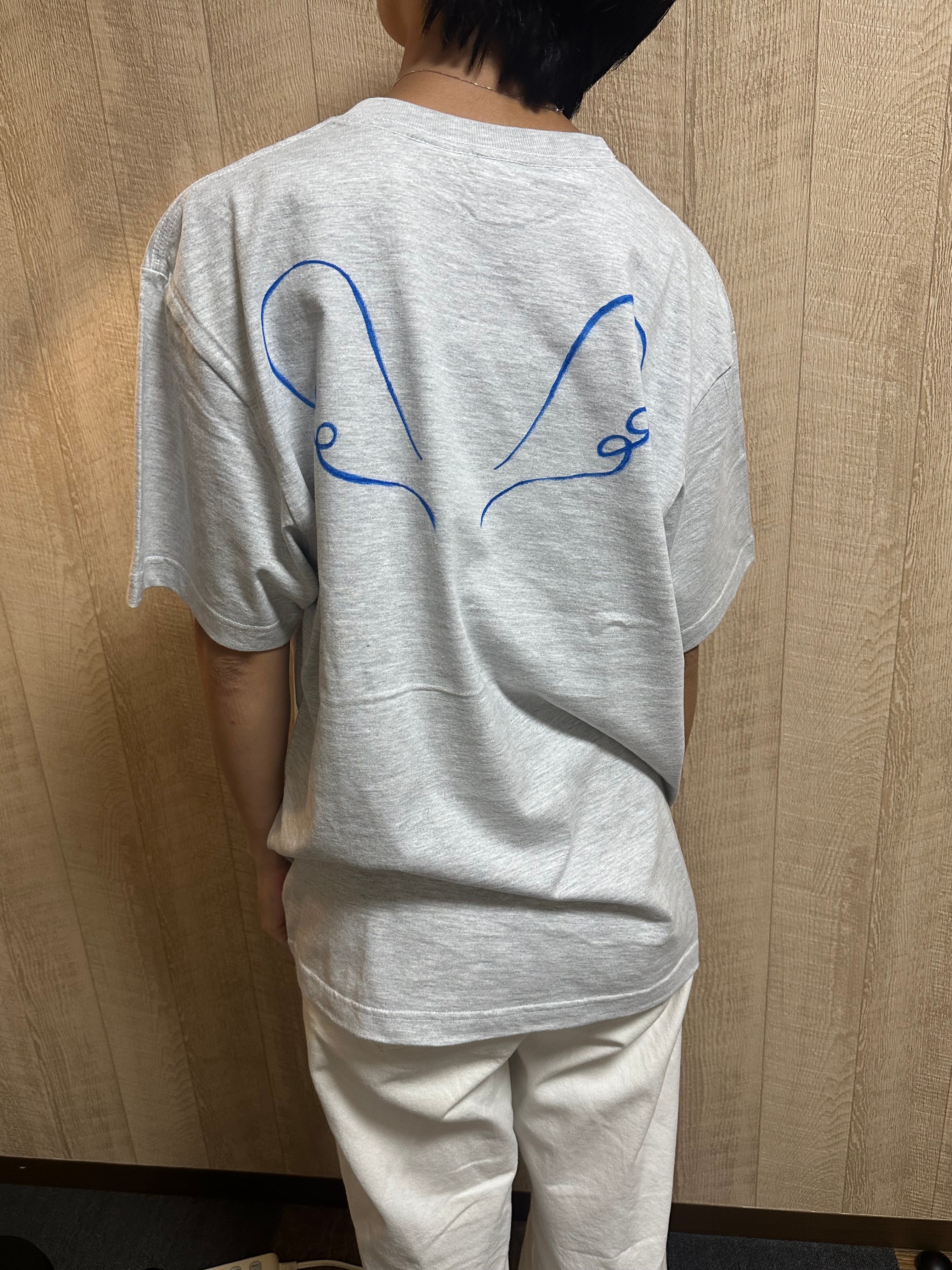 ナミヒラアユコ手書き印刷です。そして背中の肩甲骨の辺りには小さい羽が!