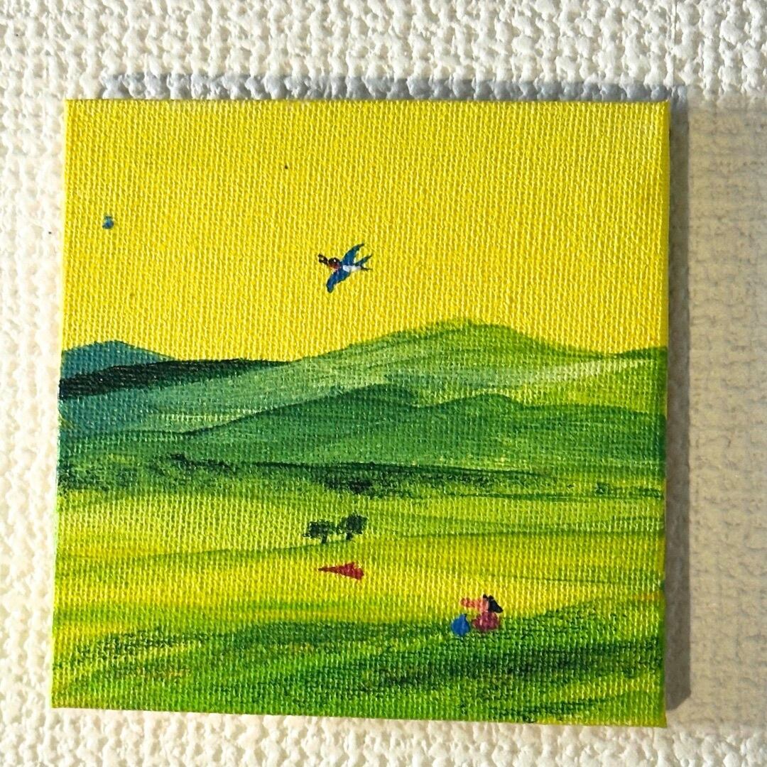 初夏の穏やかな空で、チビころちゃんが紙飛行機を飛ばしながら、少し遅れて出発した一羽の燕にエールを送っています。青空の下でチビころちゃんが元気に飛ばす紙飛行機の姿は、見る人に明るい気持ちと共に、爽やかな季節の訪れを思い出させてくれることでしょう。このアート作品は、初夏の軽やかさと共に、希望溢れる気持ちを与えてくれます。