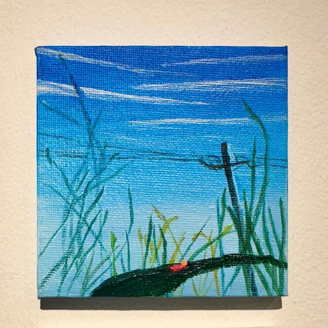 秋晴れの空の青さを楽しみながら、葉っぱのベッドに仰向けに寝転び、筋雲を見上げるチビころちゃんの姿が、心に安らぎをもたらすことでしょう。この作品は、秋の心地よい風を感じる瞬間を描いており、静かなひとときを楽しむ幸せを思い出させてくれます。